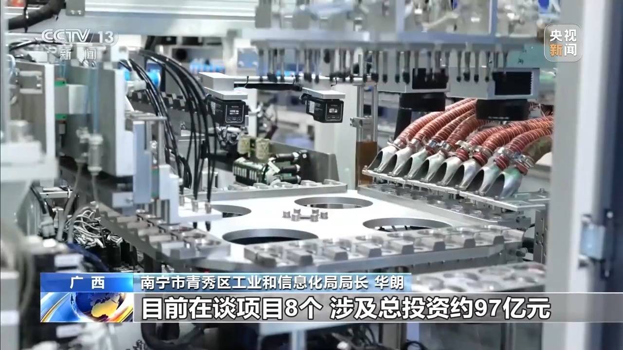 南宁市青秀区工业和信息化局局长 华朗:我们伶俐工业园区一季度规上工业总产值同比增长近69%,工业投资增长超过134%。2026年一季度,我们新签约两个项目,总投资1.42亿元,达产后预期总产值达到35亿元。目前在谈项目8个,涉及总投资约97亿元。